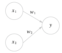 - x1, x2 = 입력신호 / y = 출력신호 / w1, w2 = 가중치